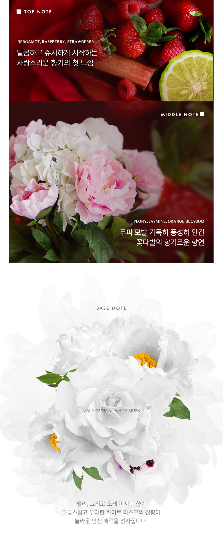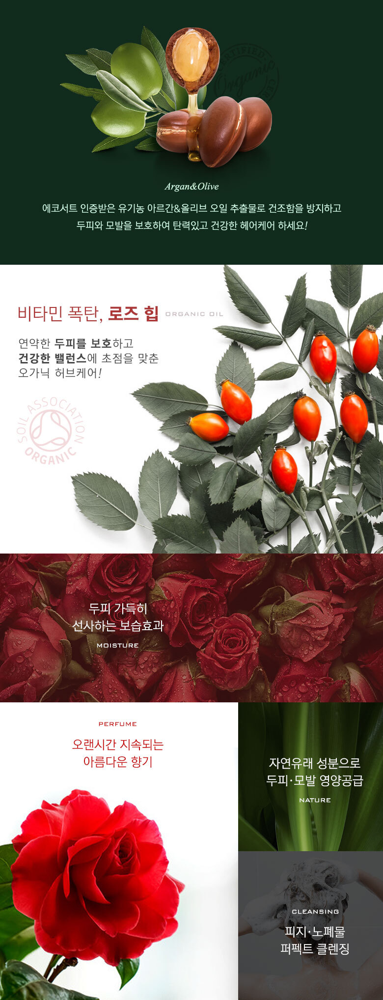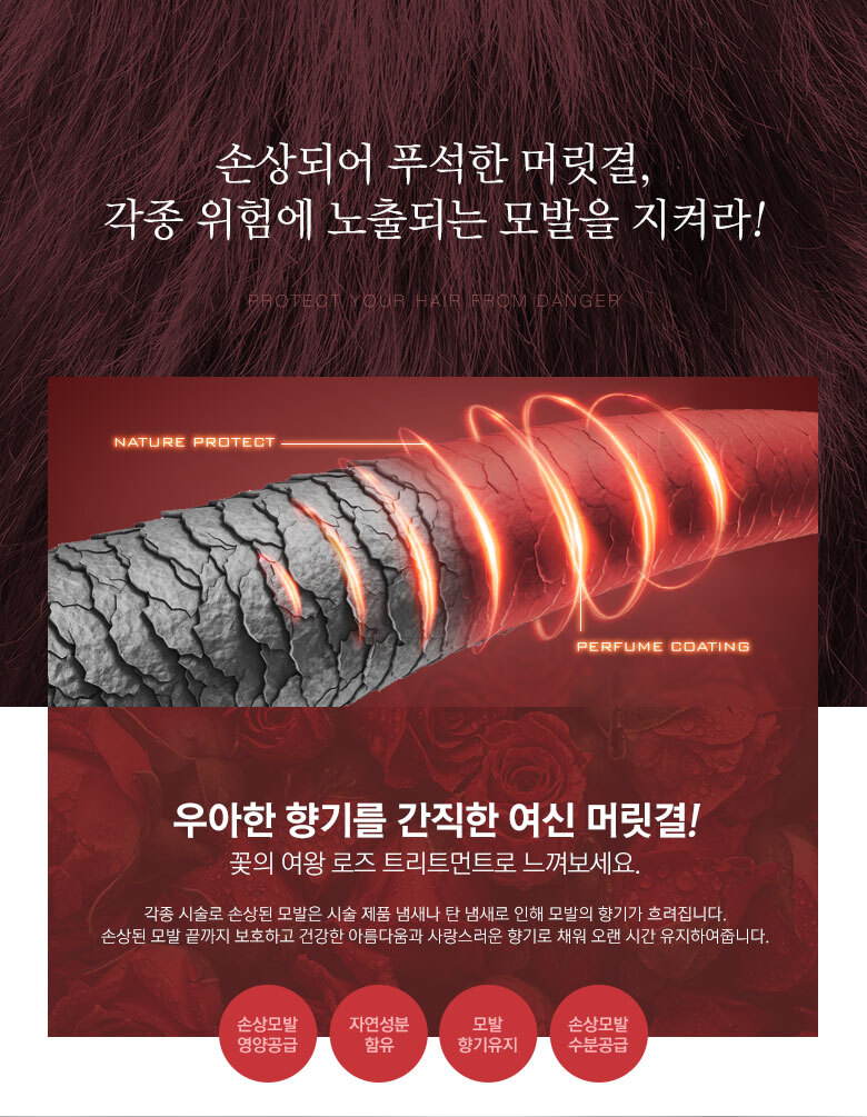 | 화장품법에 따라 기재/ 표시하여야 하는 모든 성분 | 더 로즈 샴푸 : 정제수, 다이소듐라우레스설포석시네이트, 코카미도프로필베타인, 코코-글루코사이드, 글리세린, 데실글루코사이드, 솔비톨, 소듐코코일이세티오네이트, 글리세레스-26, 드럼스틱잎추출물(5,000ppm), 다마스크장미꽃추출물(5,000ppm), 로즈힙열매오일, 올리브오일, 아르간커넬오일, 하이드롤라이즈드실크, 하이드롤라이즈드콜라겐, 하이드롤라이즈드케라틴, 다윈튤립꽃추출물, 모란꽃수, 동백나무꽃추출물, 프로방스장미꽃추출물, 데이지꽃추출물, 봉선화꽃추출물, 금낭화꽃추출물, 복사나무꽃추출물, 와일드제라늄추출물, 채송화추출물, 개양귀비꽃추출물, 폴리쿼터늄-10, 시트릭애씨드, 폴리쿼터늄-11, 코카마이드메틸엠이에이, 피이지-120메틸글루코스디올리에이트, 라우릴다이에틸렌다이아미노글라이신, 트레할로오스, 에틸헥실글리세린, 메틸프로판다이올, 부틸렌글라이콜, 1,2-헥산다이올, 소듐클로라이드, 소듐벤조에이트, 다이소듐이디티에이, 향료, 벤질살리실레이트, 벤질벤조에이트, 리날룰, 부틸페닐메틸프로피오날, 제라니올, 헥실신남알더 로즈 트리트먼트 : 정제수, 세테아릴알코올, 사이클로펜타실록세인, 아모다이메티콘, 솔비톨, 스테아라미도프로필다이메틸아민, 세틸알코올, 베헨트라이모늄메토설페이트, 다이팔미토일에틸다이모늄클로라이드, 다이메티콘올, 에틸헥실팔미테이트, 다이메티콘, 드럼스틱잎추출물(5,000ppm), 다마스크장미꽃추출물(5,000ppm), 로즈힙열매오일, 올리브오일, 아르간커넬오일, 판테놀, 하이드롤라이즈드실크, 하이드롤라이즈드콜라겐, 하이드롤라이즈드케라틴, 프로방스장미꽃추출물, 다윈튤립꽃추출물, 모란꽃수, 동백나무꽃추출물, 데이지꽃추출물, 봉선화꽃추출물, 금낭화꽃추출물, 복사나무꽃추출물, 와일드제라늄추출물, 채송화추출물, 개양귀비꽃추출물, 글리세린, 토코페릴아세테이트, 부틸렌글라이콜, 메틸프로판다이올, 라우릴피리디늄클로라이드, 라우릴다이에틸렌다이아미노글라이신, 피씨에이에틸코코일알지네이트, 1,2-헥산다이올, 글라이콜릭애씨드, 향료, 벤질살리실레이트, 벤질벤조에이트, 리날룰, 부틸페닐메틸프로피오날, 제라니올, 헥실신남알 |