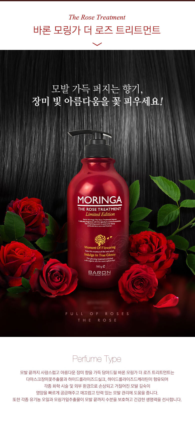 Baron Moringa The Rose Shampoo 500g x2 + Treatment 500g / 바론 모링가 더 로즈 샴푸 500g x2 + 트리트먼트 500g