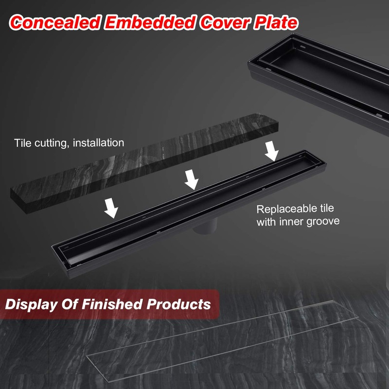 - [PERFECT FOR VARIETY OF APPLICATIONS] - It can use linear floor drain as a bathroom drain, garage floor tile drain, trench drain pet cleaning station kitchen balcony it does not have to be in the center of the shower effectively solves the problem of water accumulation.