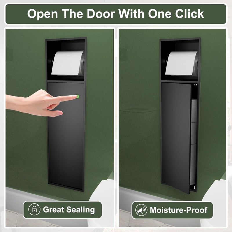 - Flush-Mount Design: Recessed tissue paper holder adopts over-mounted design, saves space toilet paper niche with built-in storage cabinet, perfect for small bathrooms or renovation projects