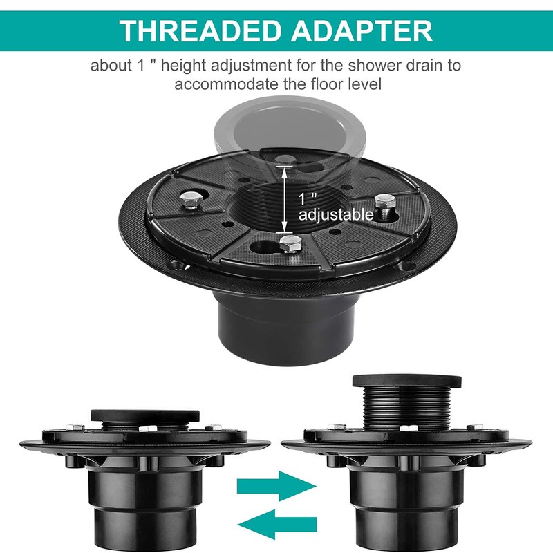 - DESIGN: The adjustable flange allows you to adjust and set the height of the floor drain to accommodate any height to make sure the drain is perfectly set when pouring the concrete shower pan