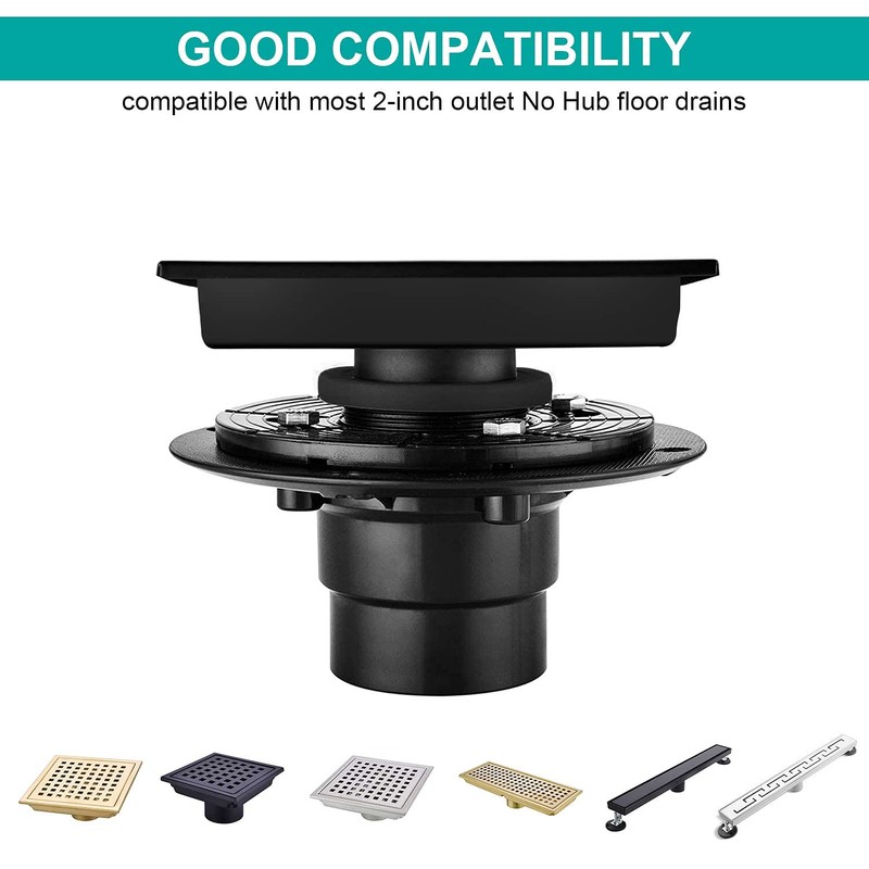 - AREAS of APPLICATION: The shower drain base is compatible with all 2-inch hub-less drainage pipes on the market. The diameter of the inner is 2.36 inches. It can be installed in any indoor or outdoor areas