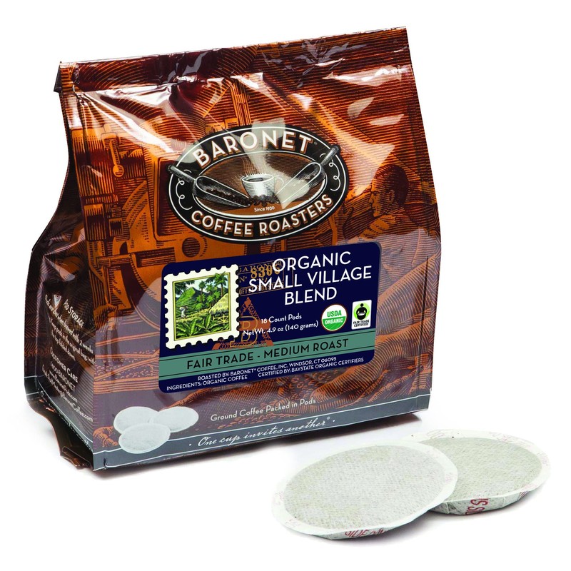 Baronet Coffee Pods [Organic Small Village-54 Pods] Single Cup Use Like Senseo - 3 Bags of 18 Single Serve 8 Gram, Regular Strength, Medium Roast [Organic Small Vill]