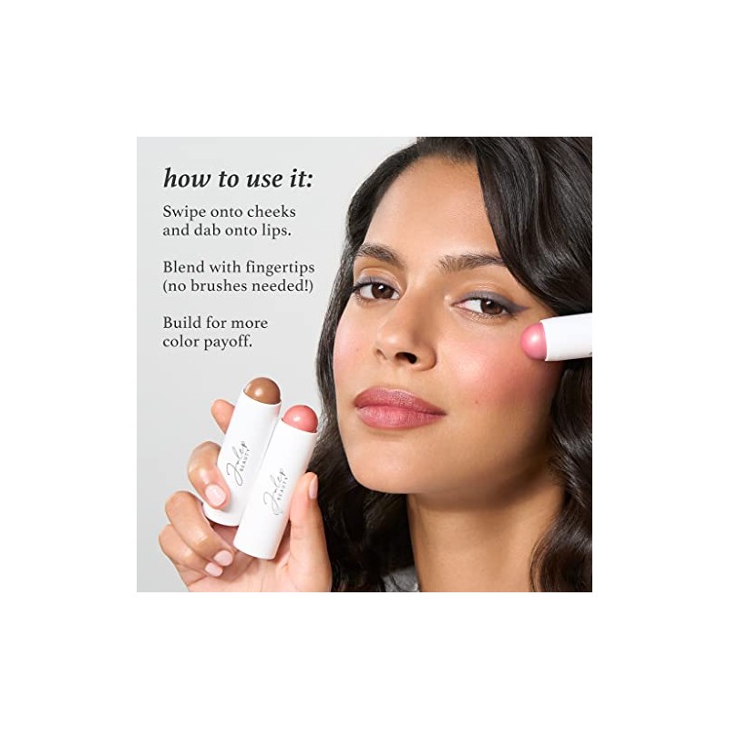- No requiere cepillo: desliza cada palo de rubor en las mejillas para un rubor juvenil y saludable. Póntelo en tus labios para que coincida con un color intenso. ¿La mejor parte? No necesitas un solo pincel para obtener el aspecto perfecto. Simplemente desliza, mezcla con las yemas de los dedos y listo!