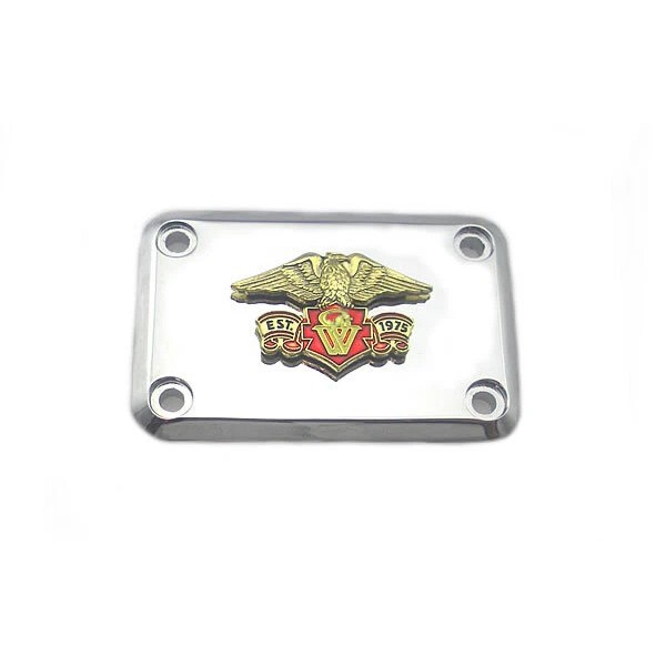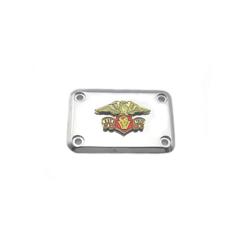 4-screw chrome master cylinder cover with optional Gold Wing emblem. Screws not included. Shown here with our chrome Master Cylinder Lower Reservoir Cover 93-216 and Master Cylinder Reservoir kit 32-8043.