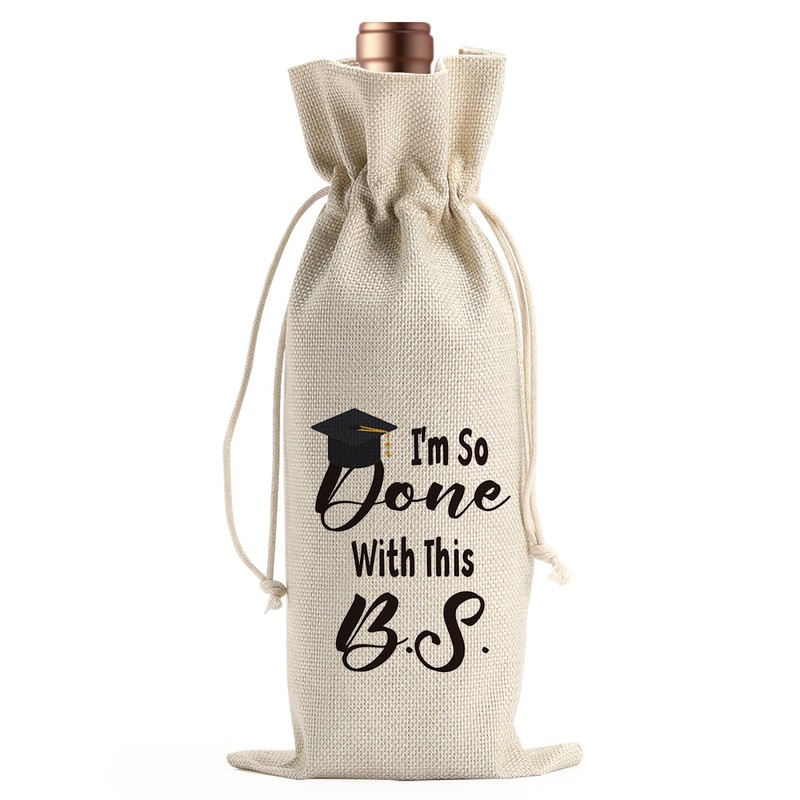 BARREEMO Funny Bachelor of Science Degree Graduation Gifts Wine Bag Gifts for College Graduate I'm so Done with This BS Wine Bottle Bag for BS Graduation Party Decorations