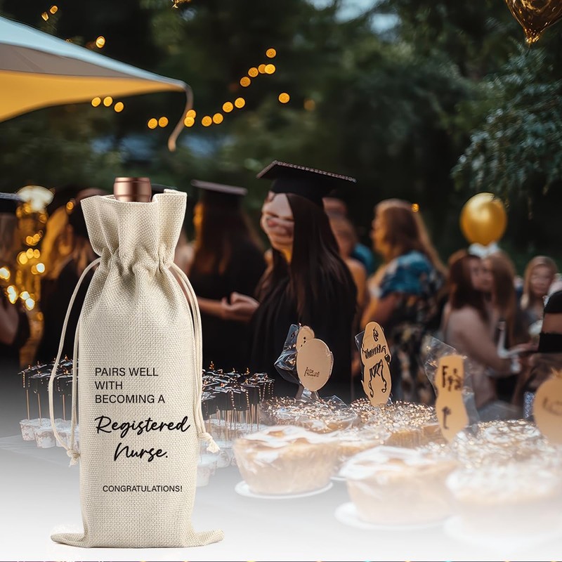 BARREEMO RN Graduation Gifts Wine Bag for Her Him Gifts for Registered Nurse Friends Graduates Pairs Well with Becoming A Registered Nurs Wine Bottle Bag for Nursing School Graduation Party Decor