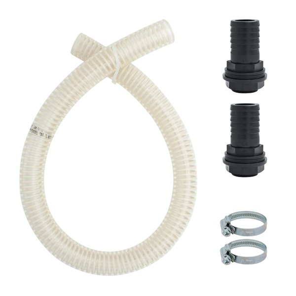- Box contents: 2 x tank guide with hose nozzle 1.25 inches (~32 mm) | 1x 1 m spiral hose inner diameter 32 mm | 2x hose clamp W1 25-40 mm