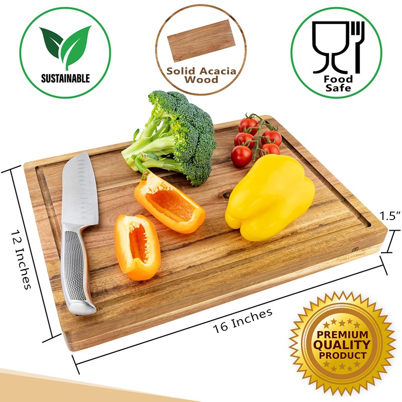 Add this Premium Thick Acacia Wood Practical Cutting Board to your countertop as an everyday useful tool in the kitchen!
