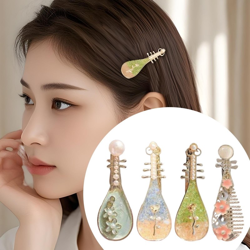 Barrettes for Women - Stringed Instrument Shaped Hair Accessories with Pearl ...