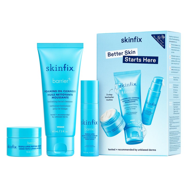 Skinfix Barrier+ Better Skin Starts Here Kit - Includes Mini Triple Lipid-Peptide Cream (0.5 oz), Mini Foaming Oil Cleanser (2 oz) & Mini Triple Lipid Activating Serum (0.35 oz) - Vegan, Cruelty Free