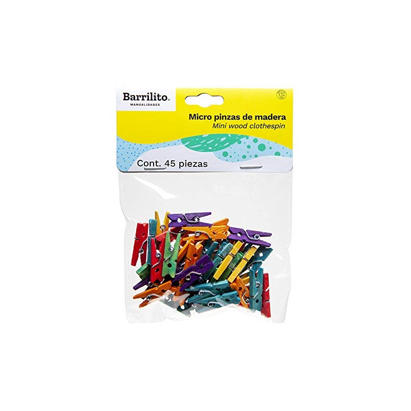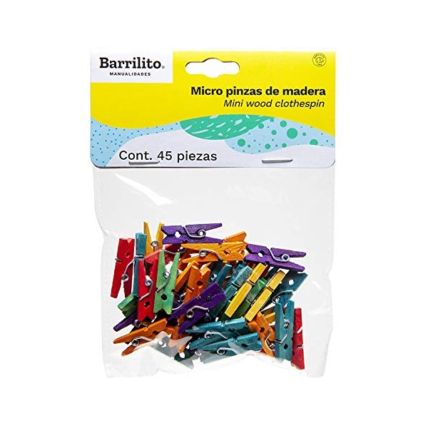 BARRILITO Micro Pinzas de Madera en Colores Surtidos, Bolsa con 45 Piezas. W060C