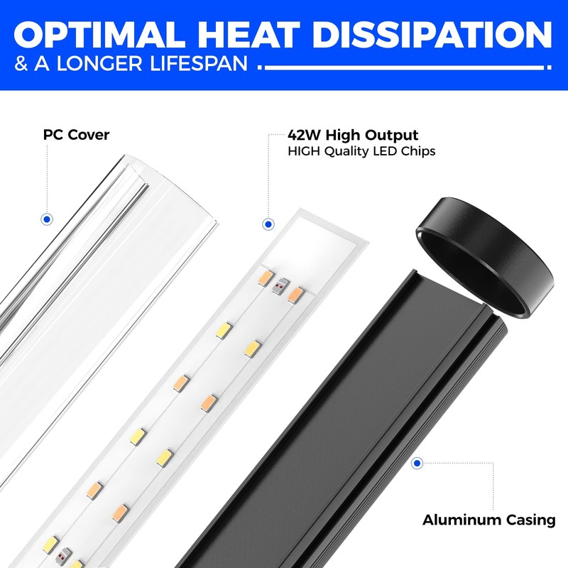 - High-output and Effective Spectrum: The full spectrum grow light with a high output of 42 watts and up to 169 LEDs. Moreover, it is equipped with 660nm red wavelength chips to satisfy your plants' needs at different stages.With a CRI of 88, this grow light accurately shows colors, aiding in plant health monitoring and growth