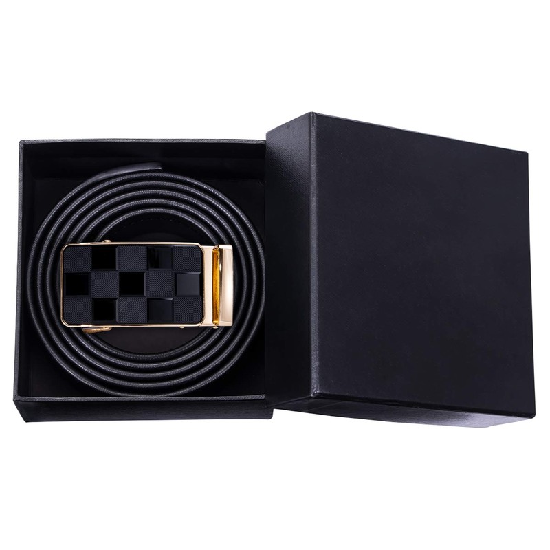 Barry.Wang Check Belt for Men Wedding Dress Business Gold Buckle Ratchet Black Leather Gift Jeans Chess Designer