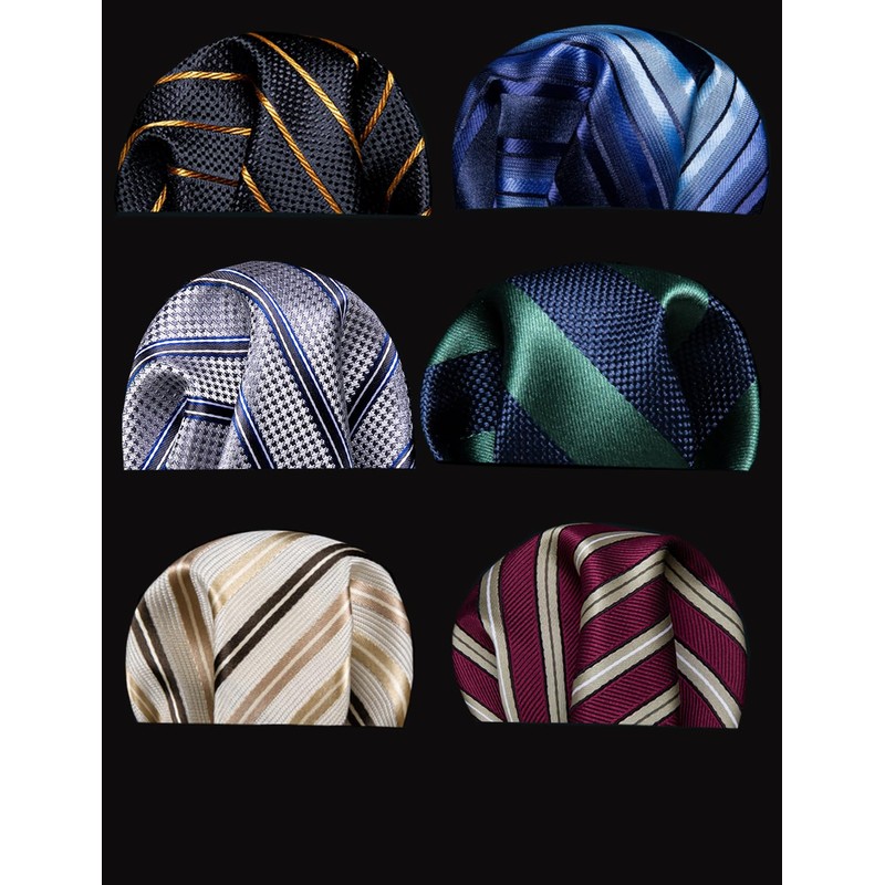 Barry.Wang - Gemelos de seda para hombre, 6 unidades, diseño de rayas de cachemira, Azul Verde Plateado, Talla única