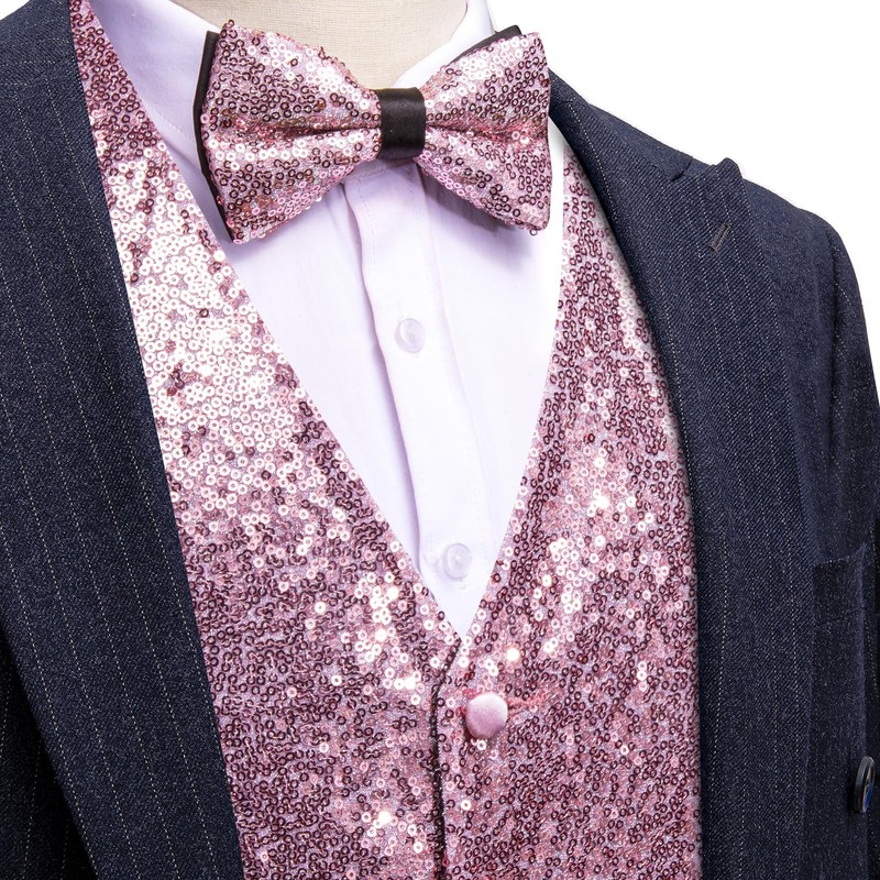 Barry.Wang Mens Sequins Vest Set V-neck Shiny Waistcoat Bowtie Set Prom Party Tuxedo Wedding for Men Dress Suit Vest S-3XL