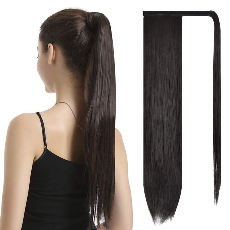 BARSDAR 30 Inch Ponytail Extension Long Straight Wrap Around Clip in Synthetic Fiber Hair for Women - Darkest Brown