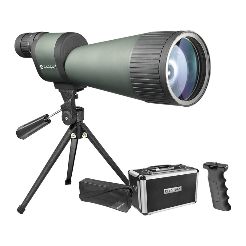 BARSKA Benchmark 18-90x88 Straight Spotting Scope with Handheld Tripod, Table Top Tripod, Soft Carrying Case And Hard Case