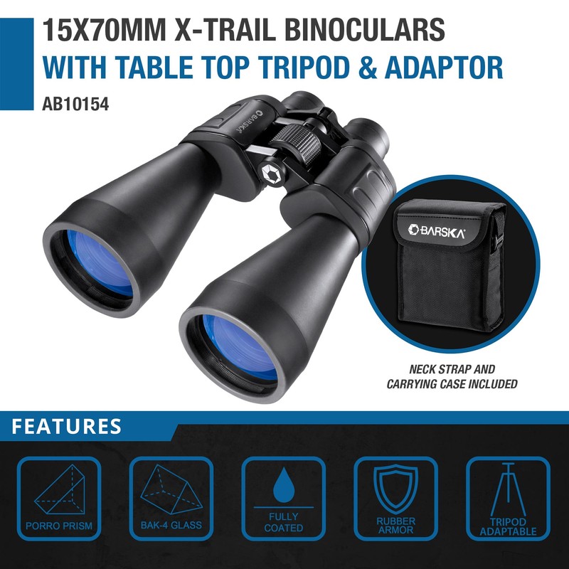 BARSKA X-Trail 15x70 Binocular w/ Tripod Adapter & Tripod , Black