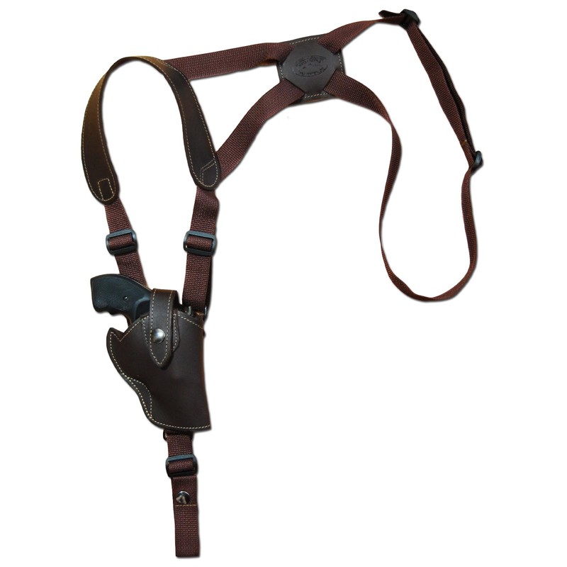 - Barsony Brown Leather Vertical Cross Harness Shoulder Holster is compatible with gun make/model sizes listed in the drop down menu. Premium Quality Leather REVOLVER Shoulder Holster with precision stitching, lightweight (only 8oz) and it is made in USA.