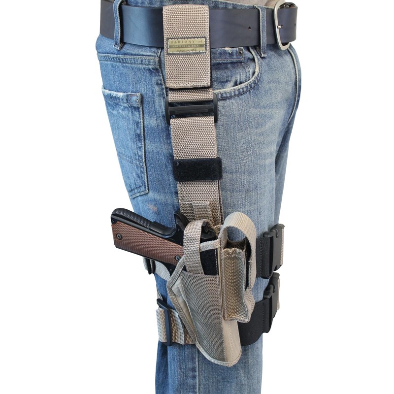 • Accepts belts up to 2.5" wide. Barsony New Desert Sand Tactical Drop Leg Holster is compatible with the gun make/model sizes listed in the drop down menu.