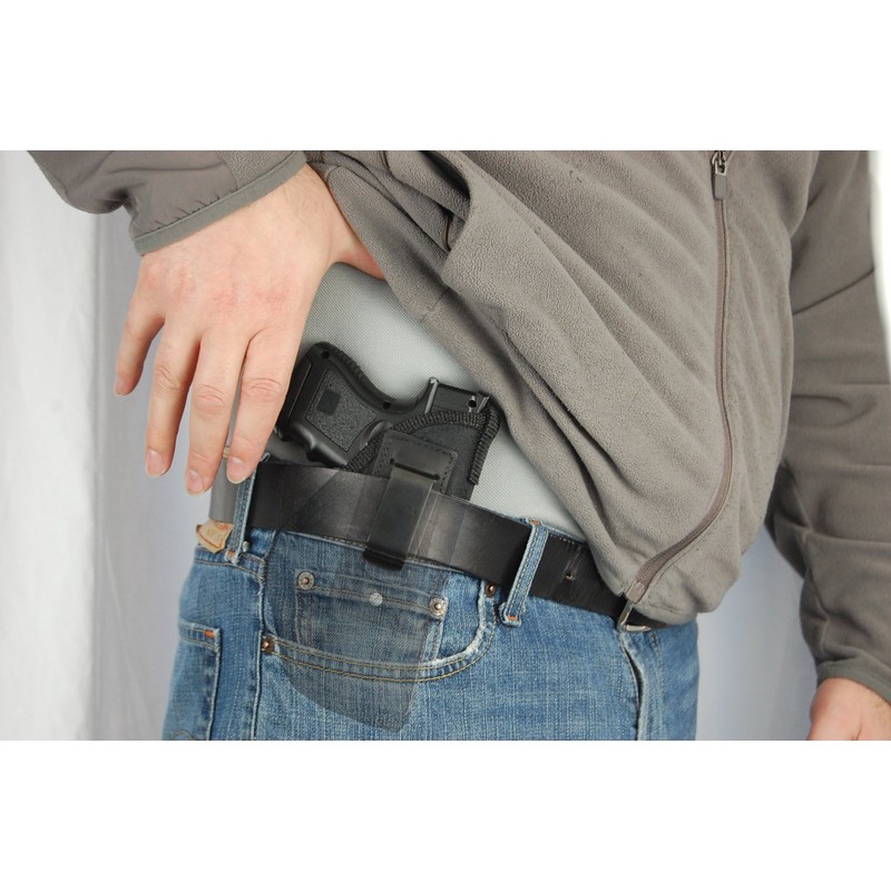 - Design helps anchor holster inside pants or skirt/dress; Ultra-thin four-layer laminate that is no thicker than conventional suede leather holsters. Internal moisture barrier won't transmit perspiration to gun. Lightweight; open style; ultimate concealment.