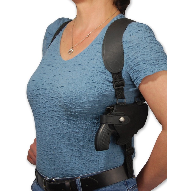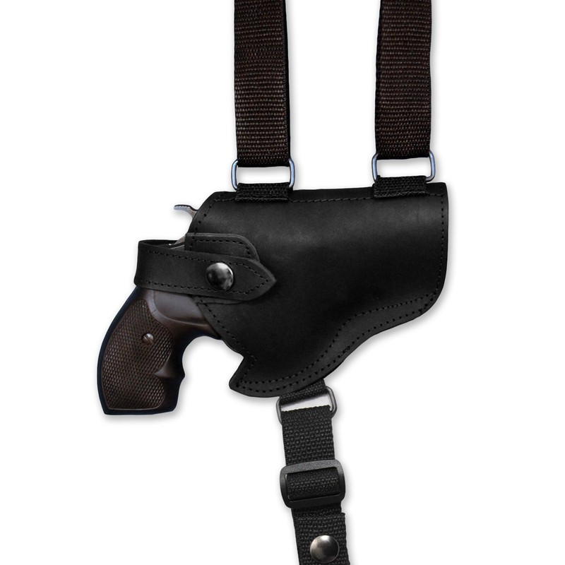 - Barsony Black Leather Cross Harness Shoulder Holster is compatible with gun make/model sizes listed in the drop down menu. Premium Quality Leather REVOLVER Shoulder Holster with precision stitching, lightweight (only 8oz) and it is made in USA.