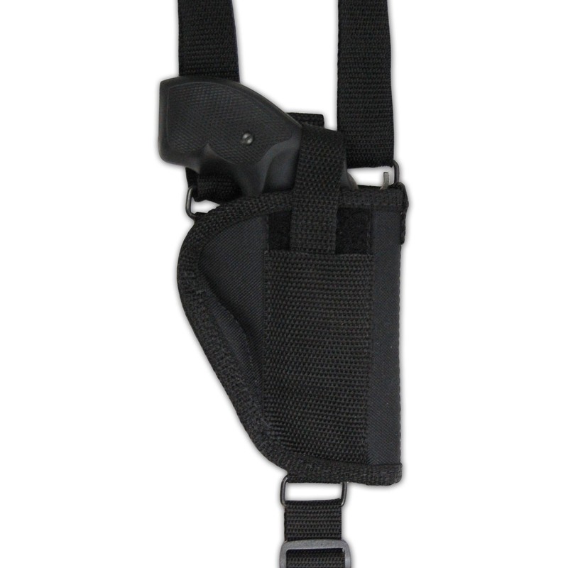 - This traditional vertical shoulder holster has a wide flat shoulder pad made from durable suede leather which grabs your clothing and does not slide from your shoulder as easily as Cordura shoulder pads.