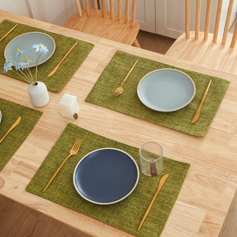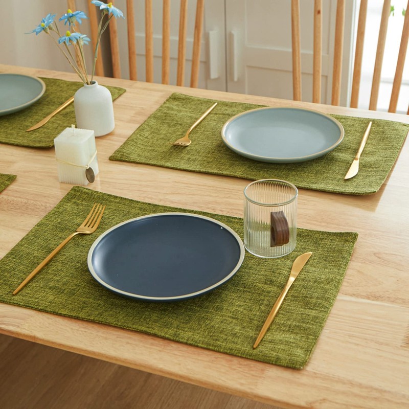 BARTHKIT Cloth Placemats Set of 6, Linen Style Thick Dining Table Mats, Heat Resistant and Easy to Clean Placemats for Kitchen Dining Table, Green