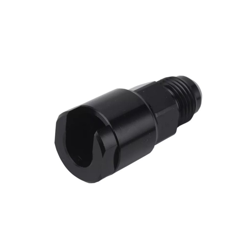 3.644123 EFI Fuel Fitting -6AN Male to 3/8"" Hardline Female Black Screw On.