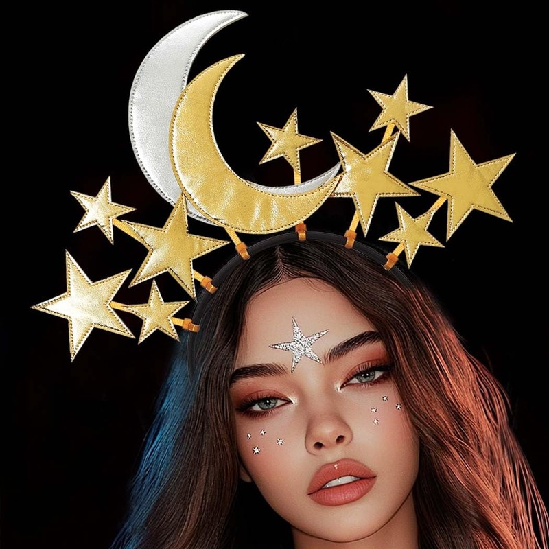 - Moon star hair bands are free size for women, the star headdress will compliment your costume.