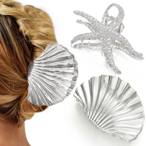 - Metal claw clips for women with two different style sizes: starfish hair claw 4.1inches/10.5cm in length and seashell hair clips 3.82inches/9.7cm in length, fashion hair accessories for full updos, best for thicker tresses.