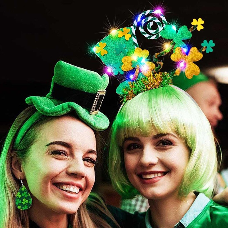 - Leprechaun hat headband have good flexibility on the headband, free size for women and girls. Wearing the green shamrock headbands with colored lights on the night of St. Patrick's Day, you are the star at night, shining, this will be a favorite accessory for everyone!
