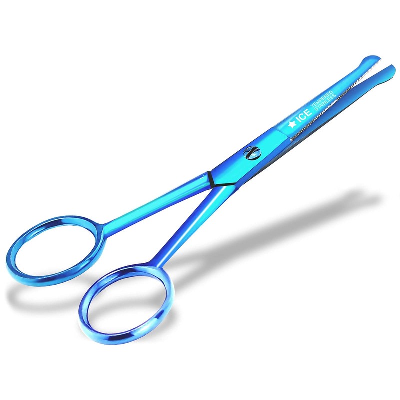 Bartschere BLUE TITANIUM Schnurrbart-Schere Nasenhaarschere mit Mikroverzahnung