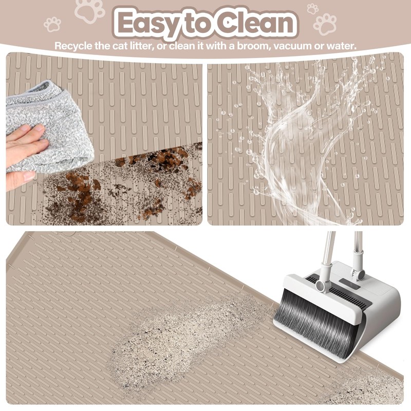 • Comfortable and Lasting Mat: The cat litter mat is made of high-quality silicone, offering a soft texture that protects your cat's paws. Silicone mat is not easy to deform, not easy to damage, and can effectively prevent water seepage, protect your floors