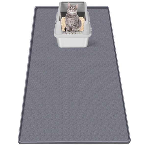 Bartuke Cat Litter Mat, Extra Large 51" x 25.6" Silicone Mat Litter Trapping Mat for Scatter Control, Soft on Kitty Paws, Easy to Clean (Dark Grey)