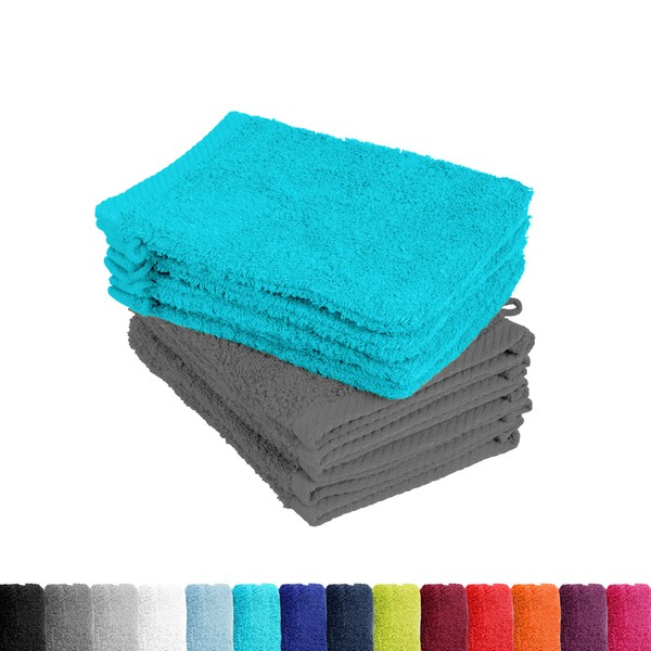 BaSaTex - Pack of 10 Face Cloths - Terry Cloth Flannels with Hanging Loop Made of Soft Cotton in 15 x 21 cm - Guest Towels Oeko-Tex Made in Green Certified - Anthracite and Turquoise