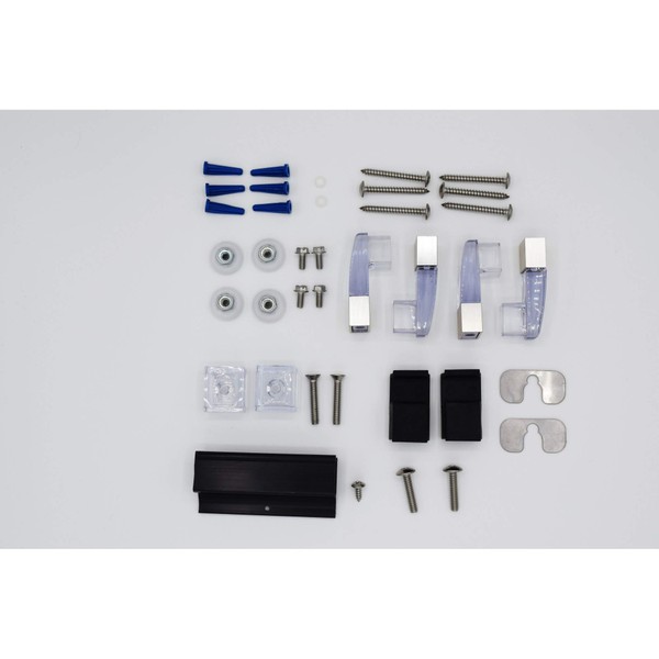 - Basco Deluxe Sliding door parts pack contains: wall anchors, nylon spacer, #8 truss head screws, rollers, towel bar brackets, trim rings, towel bars screws, finger pulls, bottom guide, #6 screw, molded bumpers, bumper inserts