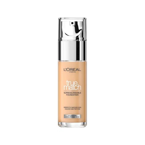 Base De Maquillaje L'Oréal True Match 30ml, enriquecida con ácido hialurónico y aloe vera, esta base mejora el aspecto de la piel en solo 2 semanas. Ofrece una textura ligera y cobertura media, además de protección solar con un FPS 17.