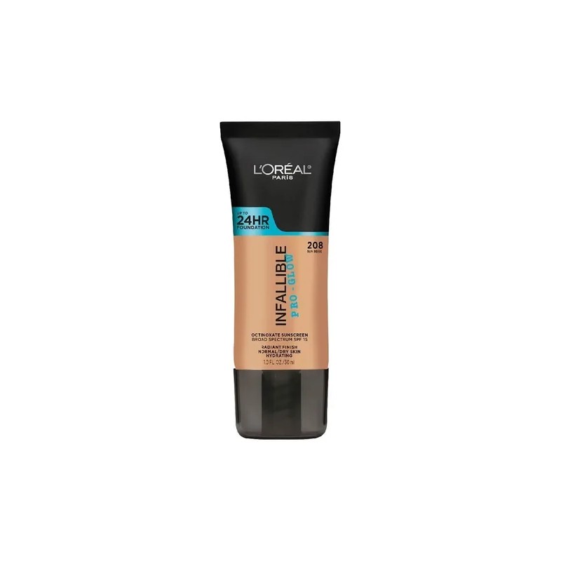 Base de Maquillaje Líquida L'Oréal Paris Infallibe Pro - Glow 24h, 30ml, Tone 208 Sun Beige