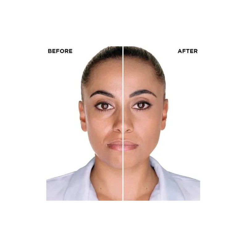 Aplica una pequeña cantidad de producto con una brocha, esponja o con la yema de los dedos. Inicia en la zona T: nariz y frente. Continúa debajo de los ojos, extendiendo hacia las mejillas y finaliza en la zona de la boca.