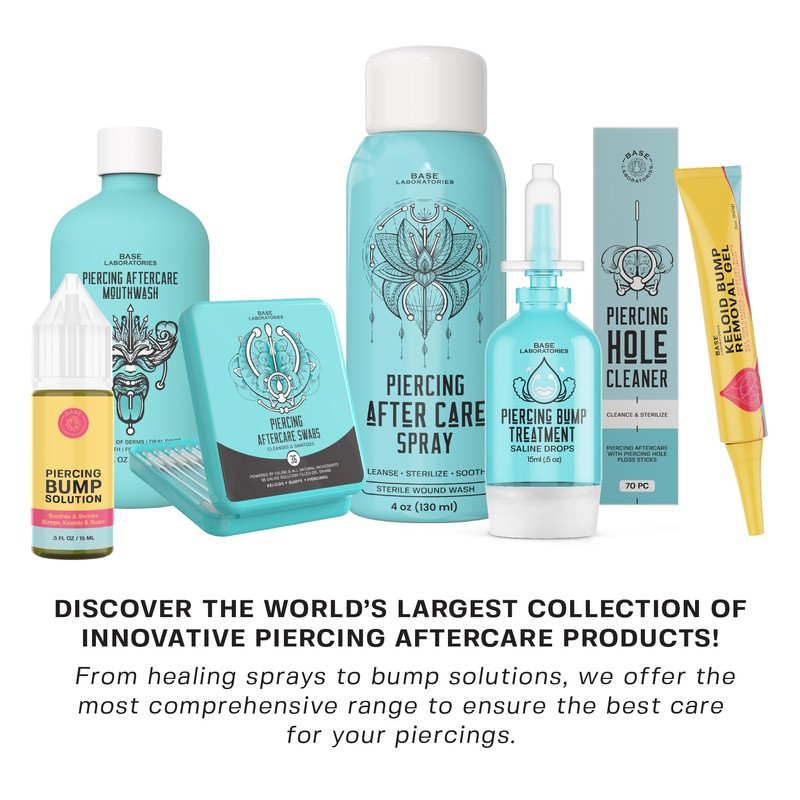 - PROMOTES HEALING OF FRESH PIERCINGS - All natural Piercing Cleaner - Remember to be gentle with your body as it heals and be wary of products that promise for keloid bump removal overnight. Base Labs keloid shrinking drops and piercing bump solution works best when applied to fresh piercings and with continued use will work to gradually decrease bumps and scars over time. Using a piercing aftercare spray oil consistently helps to maximize healing.