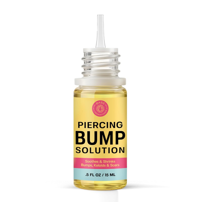 BASE LABORATORIES Piercing Bump Solution & Keloid Bump Removal | Soothing Piercing Aftercare for Piercing Bumps & Keloid Scar Removal | Ear & Nose Keloid Bumps Piercing Aftercare Solution Oil | 0.5 oz