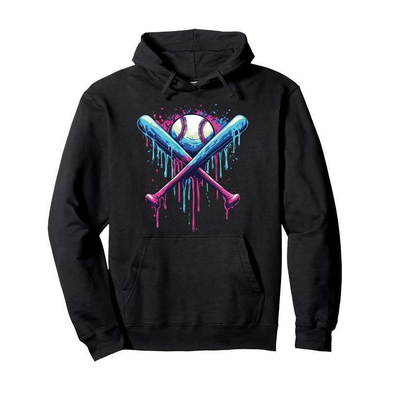 Baseball Bat Drip Funny Graphic Pullover Hoodie
