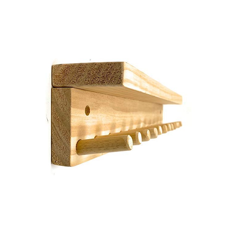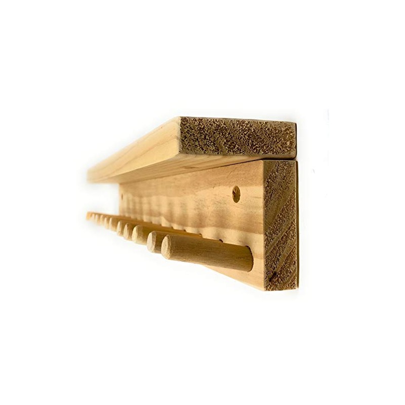 Baseball Bat Rack Display with Shelf Natural Finish Meant to Hold up to 11 Mini Collectible Bats Holder