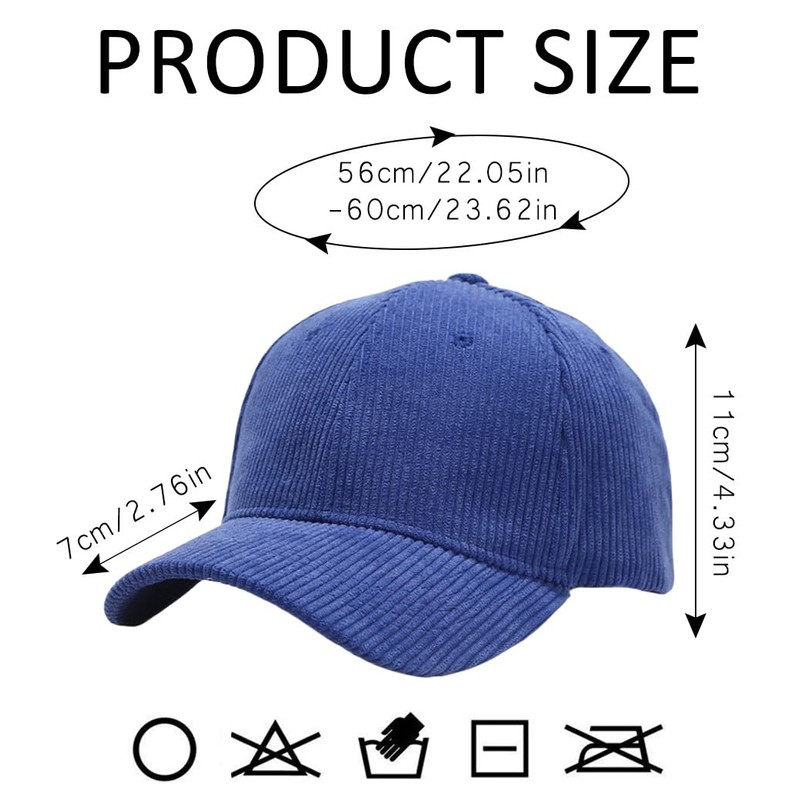 - Hat size: the depth of the neutral baseball cap is approx. 11 cm; the circumference of the hat is 56 ~ 58 cm; the visor is approx. 7 cm long and suitable for most people. The hat has a soft texture and sits well on the head.