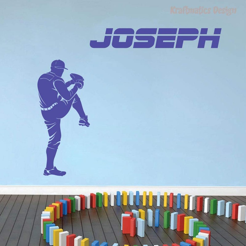 Baseball Custom Name Sports Series Nursery Wall Decal Vinyl Sticker for Home Decor. (Small W 23" x H 19")