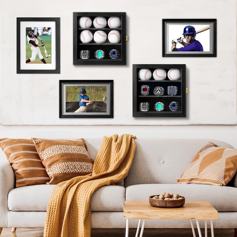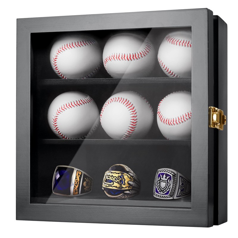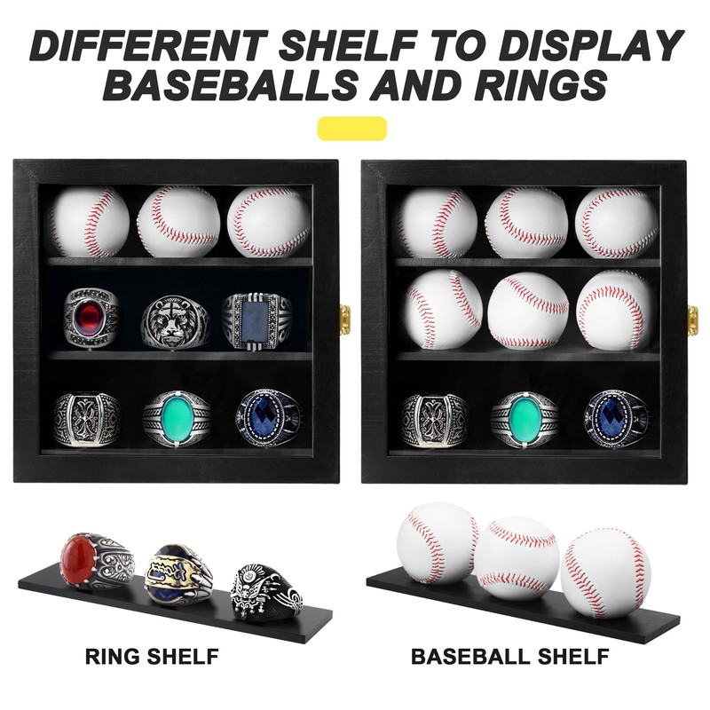 - UNIQUE DESIGN: Two ways for your choice, baseball ring display case can display 6 championship rings + 3 baseballs or 6 baseballs + 3 championship rings.