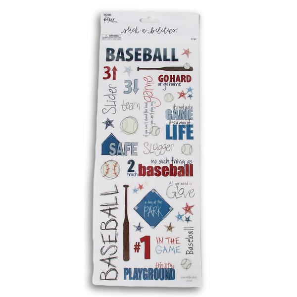 Baseball Doodle Stickers Adhesive Decals for Crafts, Cardmaking, Scrapbooks & More – 33 Pc
