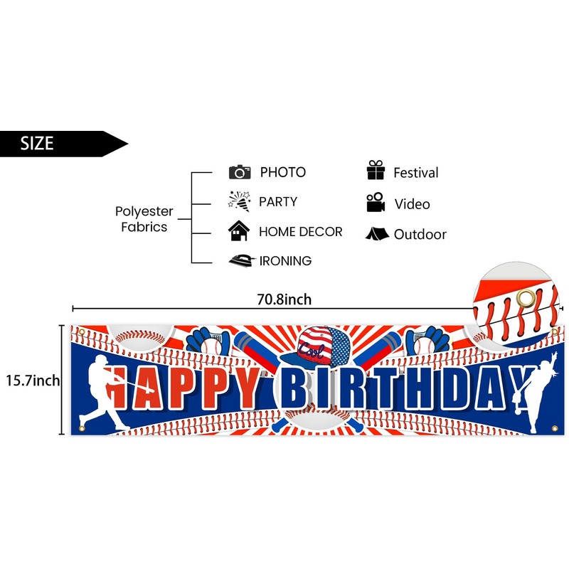 【Quality Materials】Our baseball themed birthday banners is made of thick polyester fabrics. The vibrant colors and eye-catching design make it suitable for both indoor and outdoor celebrations.